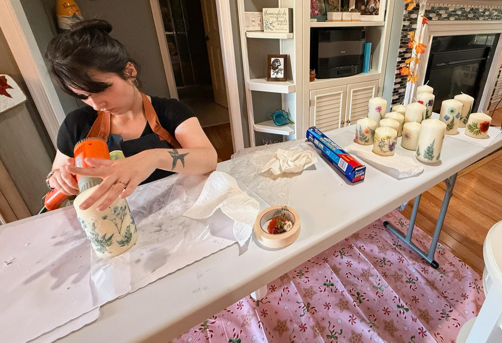 Party day! – We arrive about 30 minutes before your start time to get things set up and cozy. Most craft nights run 2–3 hours with plenty of time to create, chat, and enjoy.